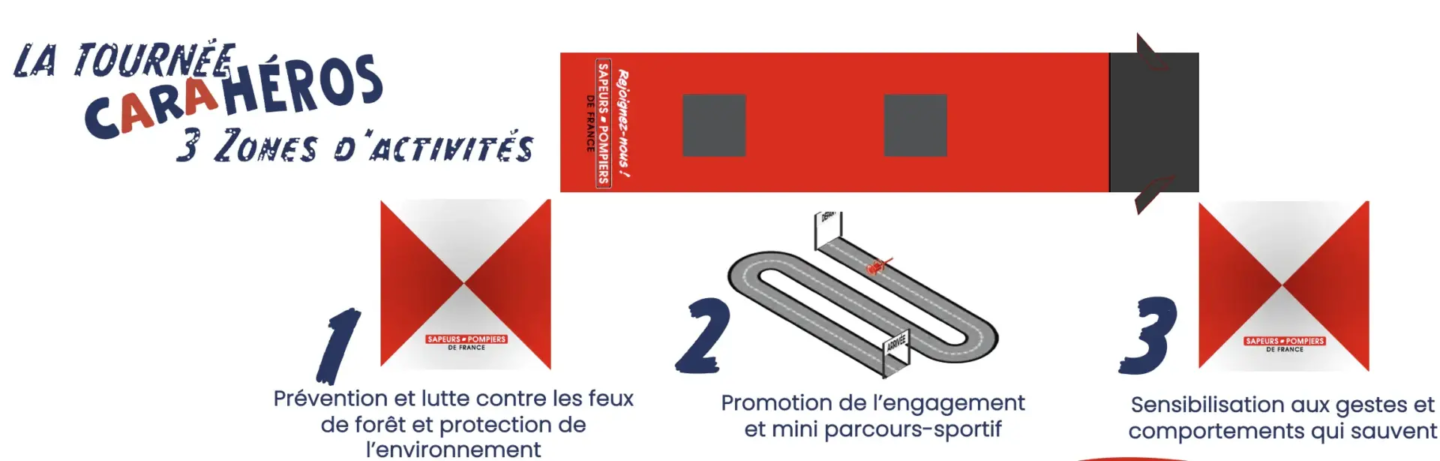 Le dispositif Carahéros est un nouveau dispositif itinérant à travers les villes et villages de France, rapprochant les sapeurs-pompiers et la population. Ce nouveau déploiement renforce l’engagement de la FNSPF dans la prévention et la sensibilisation aux comportements qui sauvent et qui protègent.