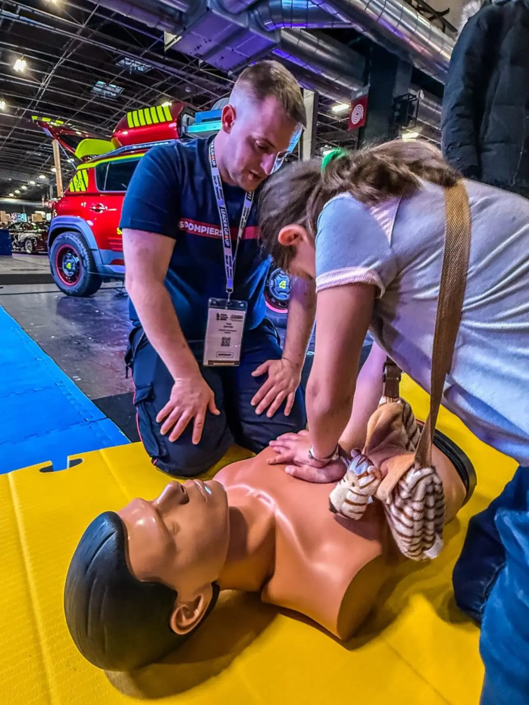 Sur leur stand, les sapeurs-pompiers de France proposent des ateliers pratiques pour apprendre à réagir face à l’urgence : massage cardiaque, gestion d’une crise d’épilepsie ou d’un étouffement.